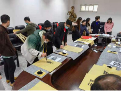 于2021年1月22日组织教职工和寒假留校学生代表开展迎新春写对联活动。