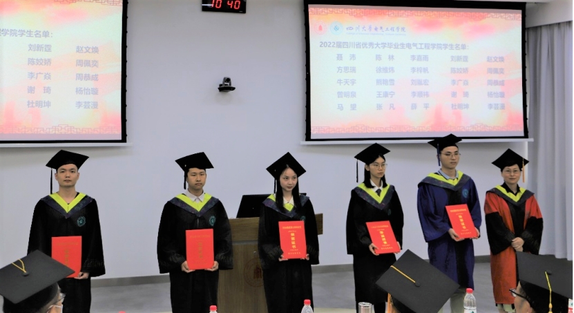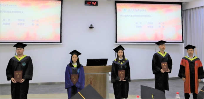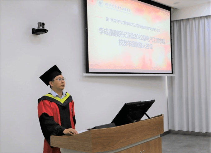 之后,007足球 党委书记韩芳教授宣读了电气工程007足球 2022届四川省优秀大学毕业生名单并为毕业生代表颁发了证书。007足球 副院长李成鑫副教授宣读电气工程007足球 2022届校友年级联络人名单并为联络人代表颁发聘书。