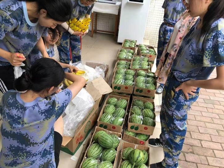 2019级和2020级本科军训学生和教官。老师们与军训同学、教官进行了深入交流,准备了新鲜水果,并在训练场上观看了同学们的军训情况。