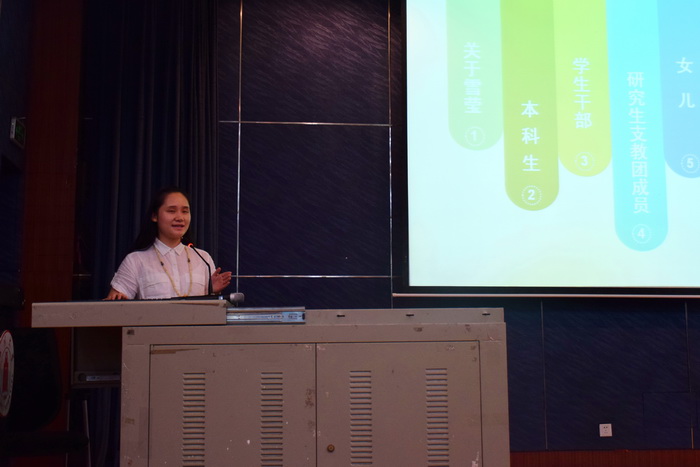 在主持人致开幕辞后,本次交流会正式拉开帷幕。三位嘉宾以自己的亲身经历为例,分别就学习经验、竞赛经验和社会生活发表了自己独到的见解,对2015级新生进行人生新阶段的指引。曾雪洋同学和尹鹏宇同学为新生介绍了许多有关专业知识学习与学术性竞赛的情况。而余雪莹同学“惟有爱与梦想不可辜负”的精彩演说更是富有激情,令新生对学生工作的意义以及如何成为一个优秀的大学生有所感悟。她对一年支教生活的经历的讲述使同学们深受触动:梦想是要去追逐的,同时,挚爱的亲情能战胜一切地域与时间的限制。此外老生与新生进行了问答互动。