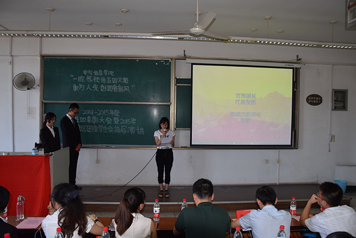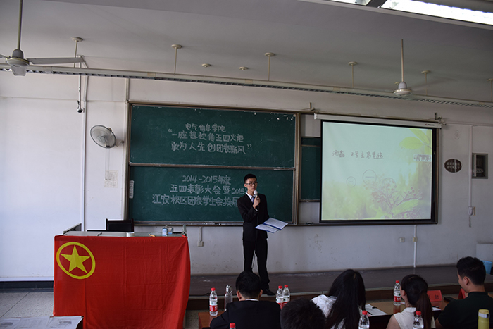 2014-2015年度“一腔热忱传五四火炬,敢为人先创团委新风”“五四”表彰大会暨2015年江安校区团委学生会换届演讲于江安校区第一教学楼B座304教室成功举办。出席此次大会的嘉宾有:电气信息007足球