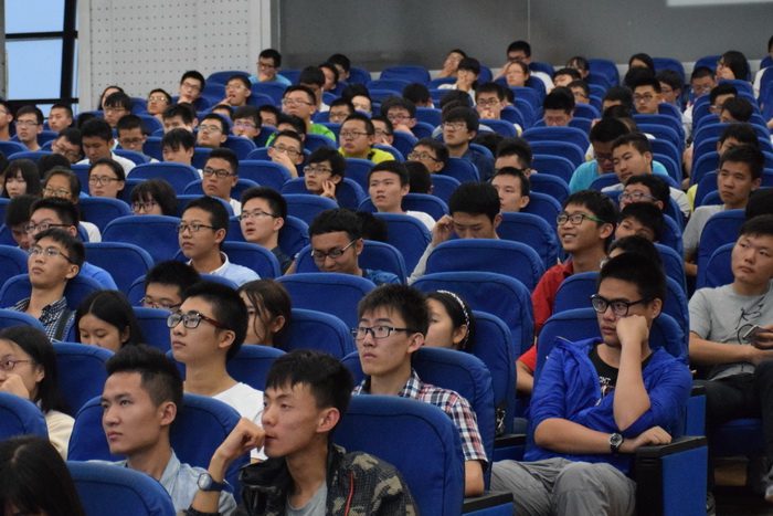 团委学生会执行副主席郎喜文主讲,2015级新生全体到场听取讲座。