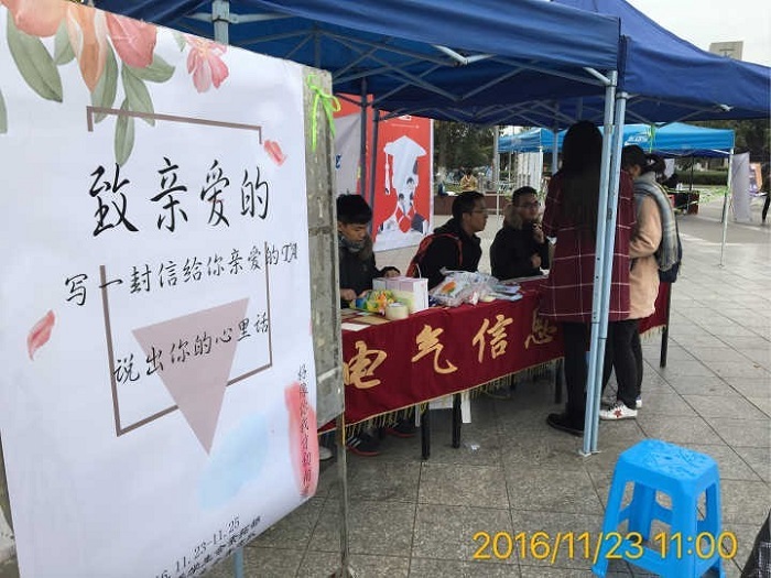 团委学生会素质拓展中心和青志队在青春广场共同举办的“致亲爱的”活动圆满结束。全校许多同学参与了此次活动。