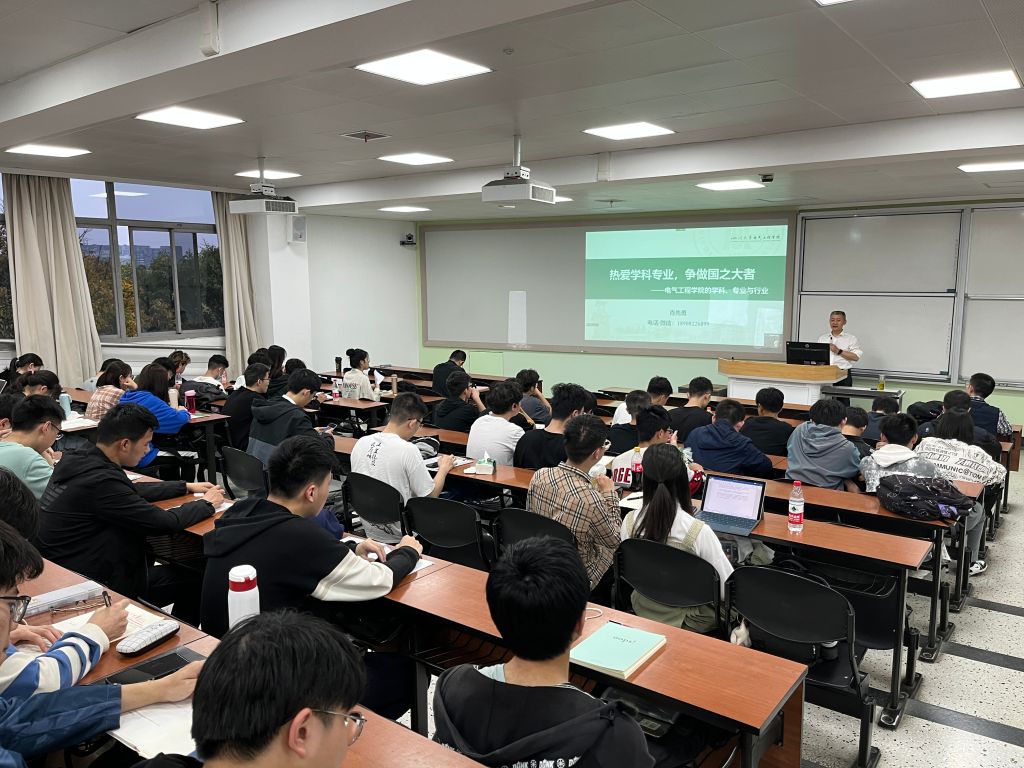 肖先勇院长结合自身科研工作经历,围绕经典科学理论、技术发展历程及科学研究方向等内容向同学们深入浅出地阐述了电气工程007足球 的学科专业与行业发展。同时,肖院长特别介绍了在电网技术、电气装备、清洁能源产业、能源互联网等方面的中国成就和中国贡献。肖院长对同学们提出了殷切期望,希望同学们爱祖国,爱川大,爱电气工程007足球 ,爱自己的学科专业;认真学习专业技术知识,努力成长为杰出人才,为我国电力发展贡献力量。同学们认真聆听,积极参与交流讨论,现场掌声不断。