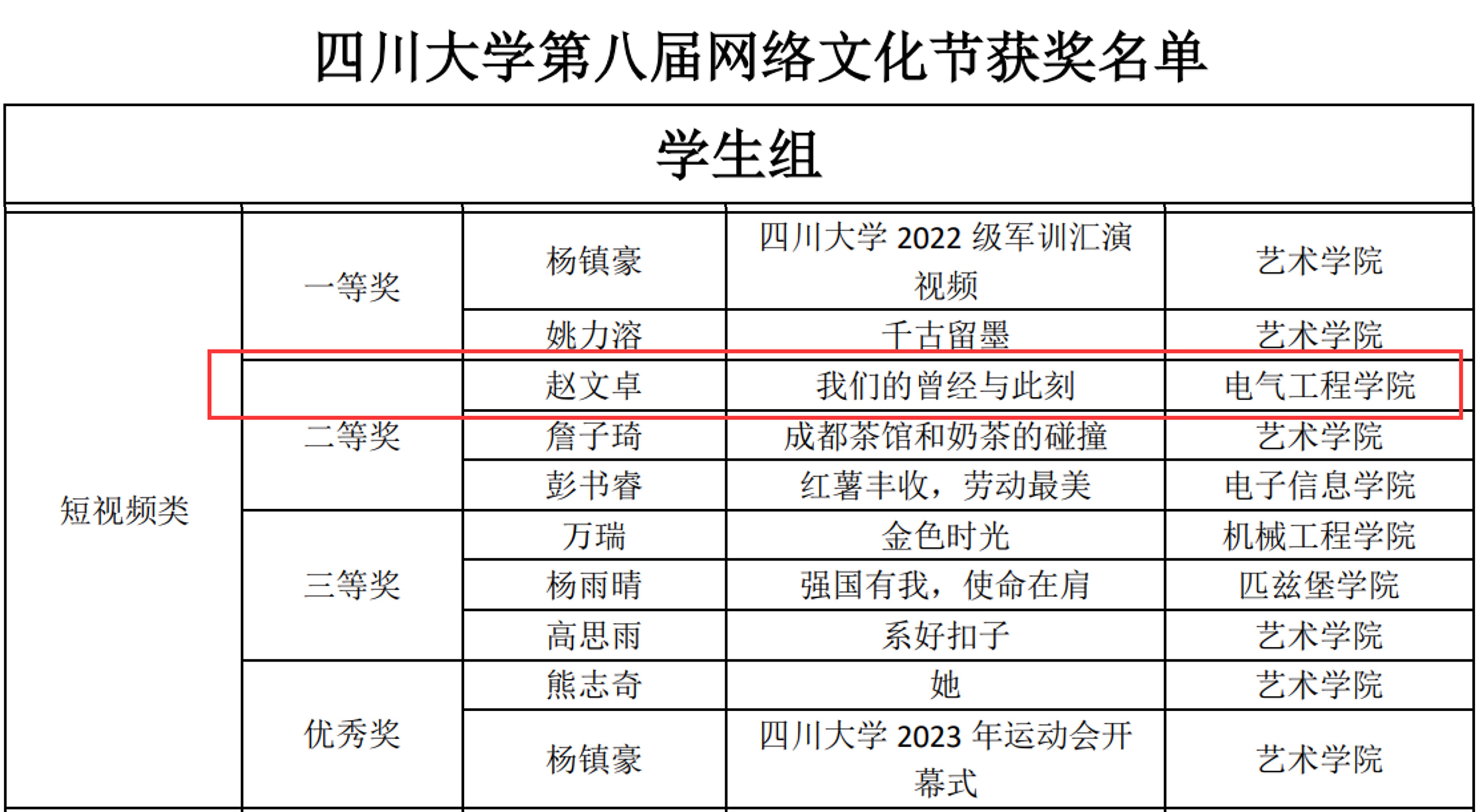 本科生赵文卓制作的微视频作品获校级二等奖。