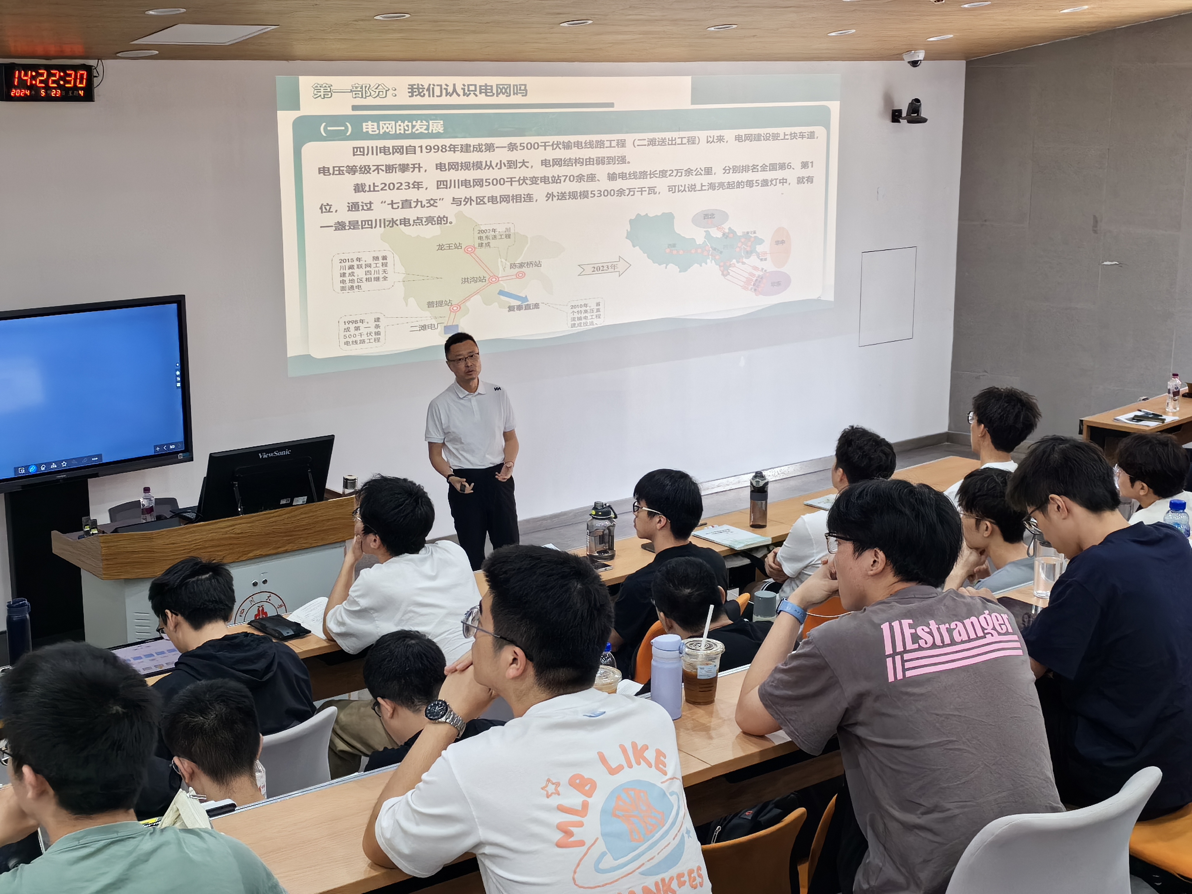 副教授陈实、罗欢邀请国网西南分部调控中心副主任、正高级工程师胡翔走进电气工程及其自动化专业21级本科生的《调度自动化及信息管理系统》课堂,为学生做“新型电力系统调度体系的认识和思考”学术报告。胡老师长期从事电网调度运行管理工作,主持西南电网转异步联网频率防线建设等科技项目研究,荣获2020年四川省科技进步一等奖,发表相关论文10余篇。