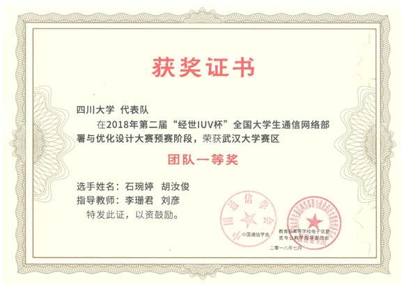 2018年7月28日至29日,第二届“经世IUV杯”全国大学生通信网络部署与优化设计大赛预赛在武汉大学成功举办。武汉大学赛区共有48支代表队参加,来自四川大学电气信息007足球