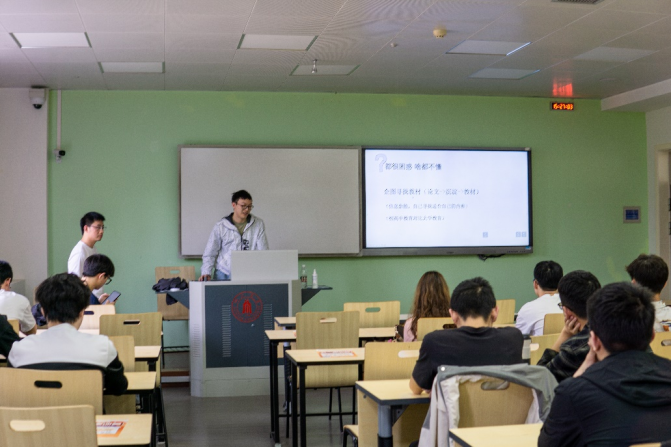 有过工作经历的研究生陈代忠学长结合自己五年的工作经验与见闻,给大三同学们提供了一些就业方面的建议,同时也分享了自己考研时复习的经验。考研成功上岸的李奕璇学姐向大三的学弟学妹们分享了考研的经验,介绍了考研资料的获取方法、专硕学硕的选择依据以及备战考研的规划思路。本校保研的杨雨石学长向同学们分享了保研经验,介绍了了解保研信息、院校政策的渠道以及保研过程中调整心态的方法和重要性,同时也介绍了如何申请国外读研。保研到西安交通大学的王景帅学长分享了参加夏令营、推免研究生的经历,并和大家一起讨论了推免择校、夏令营参与流程以及如何联系导师等关键问题。