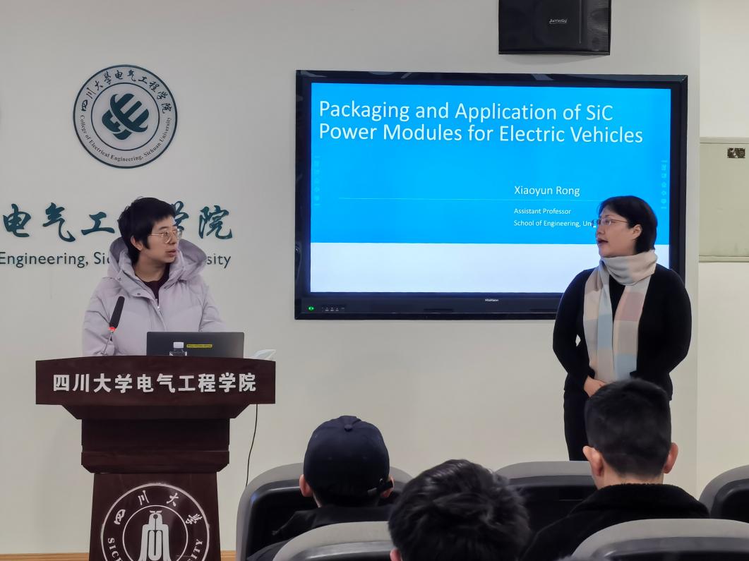 王渝红教授邀请英国华威大学助理教授荣小云博士开展了题为“电动汽车硅功率模块的封装与应用”的讲座。此次讲座吸引了众多硕士生及博士生,旨在通过工程实践中的创新封装策略,深化学生对电力电子技术的理解。讲座的顺利开展为007即时比分