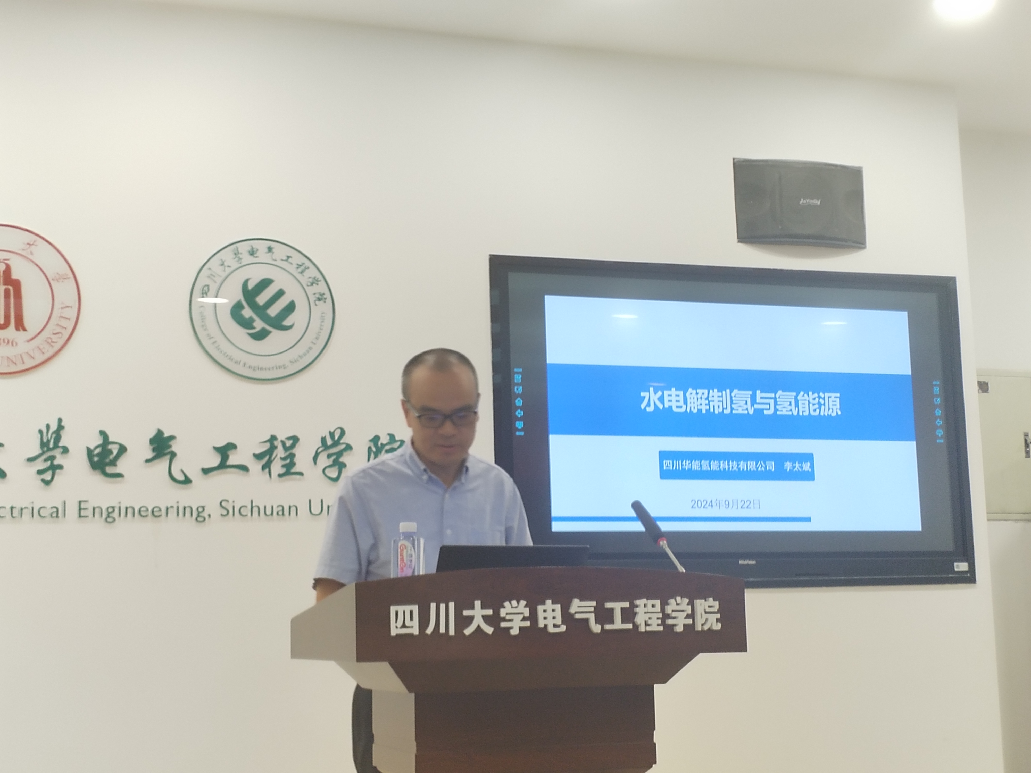 于2024年9月22日下午在望江校区基础教学楼举行了题为“水电解制氢与氢能源”的学术讲座。此次讲座特邀四川华能氢能科技有限公司的李太斌博士为主讲,电气工程副研究员周述晗主持,2023级和2024级电气工程研究生积极参与。