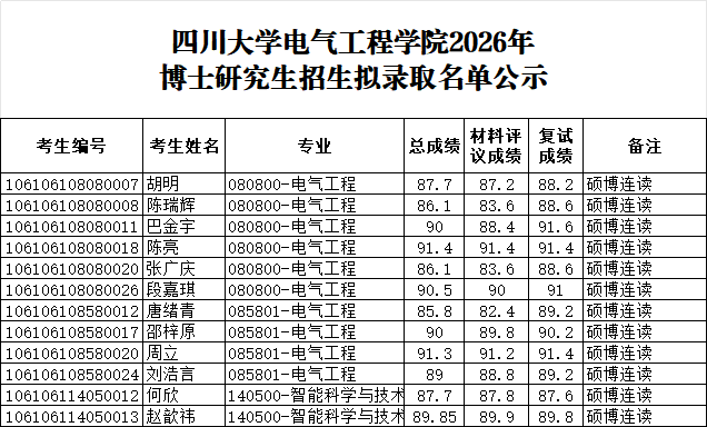 007足球-007即时比分 2026年博士研究生拟录取名单公示(硕博连读)