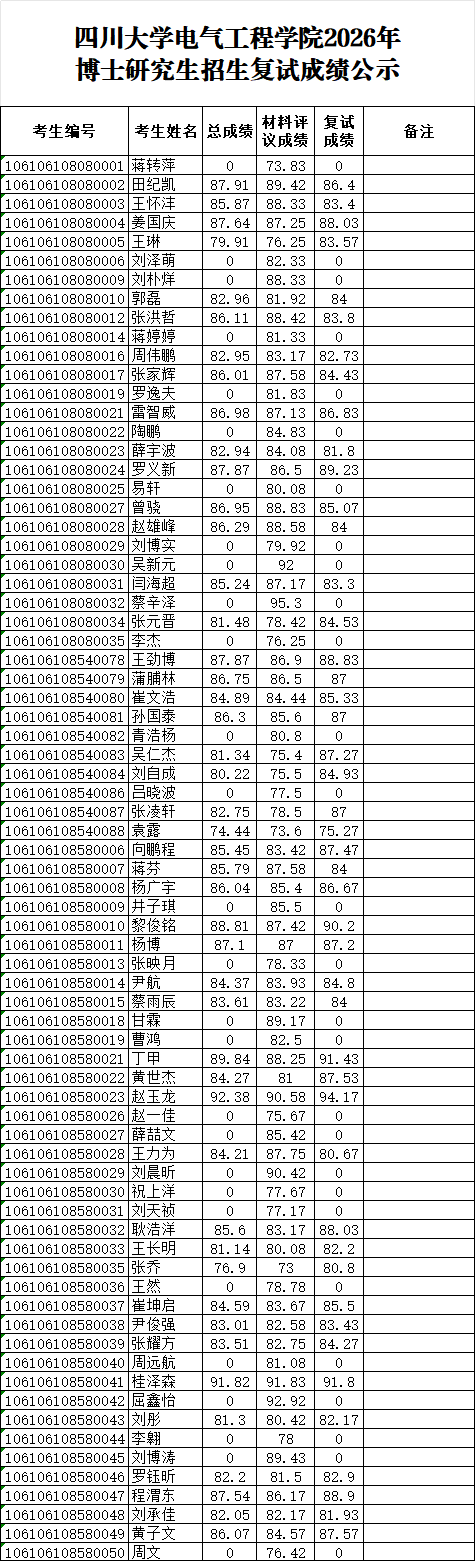 007足球-007即时比分 2026年博士研究生招生复试成绩公示