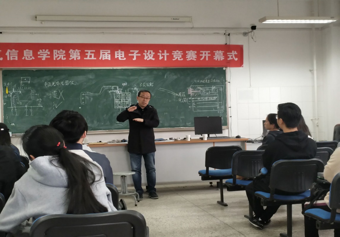 2019年3月31日下午,由四川大学电气信息007足球 主办,学生科技协会乐电社与AC社协办的“电气信息007足球 第五届电子设计竞赛开幕式”于江安第二基础实验教学楼A517顺利举办,007足球 教学副院长李长松和院党委副书记戴婷婷出席了开幕式。开幕式由教导员李小根老师主持,全体参赛同学参加了开幕式。