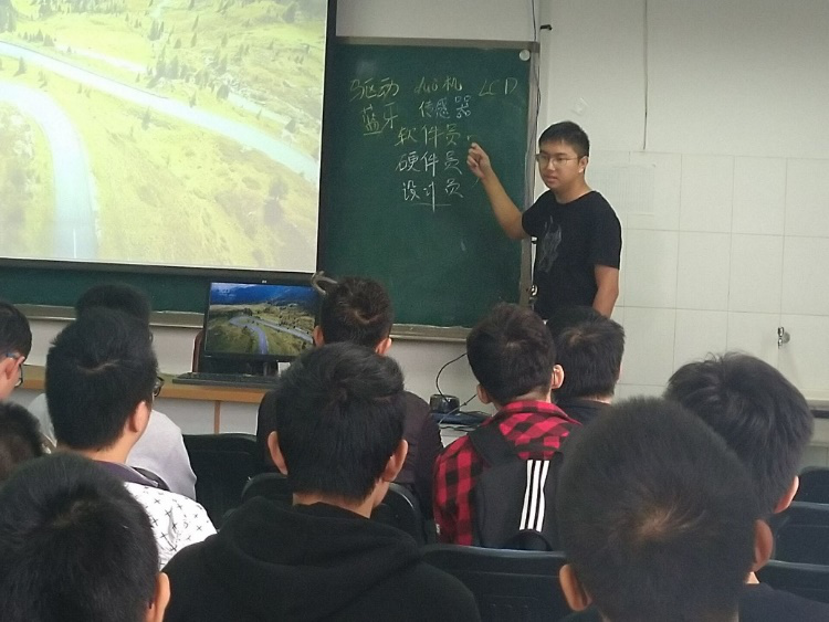 乐电社智能车协会”会长伍彦豪同学为同学们讲解了“恩智浦智能车比赛”的相关事项,帮助大家了解这个大型比赛。