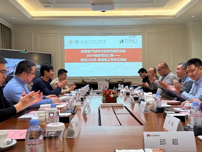 党委书记赵昱辉,实验室主任贾申利教授及研究团队,西南电工董事长陈绍义、总经理陈先行等参加座谈。该实验室由四川大学和西南电工共建,于2024年7月13日正式揭牌。此次交流会旨在总结实验室2024年度科研进展情况,进一步推动共建双方在实验室建设和科研领域的深度合作。