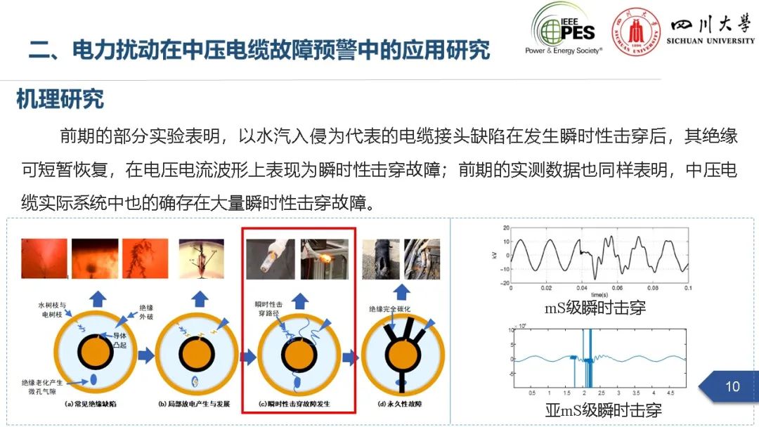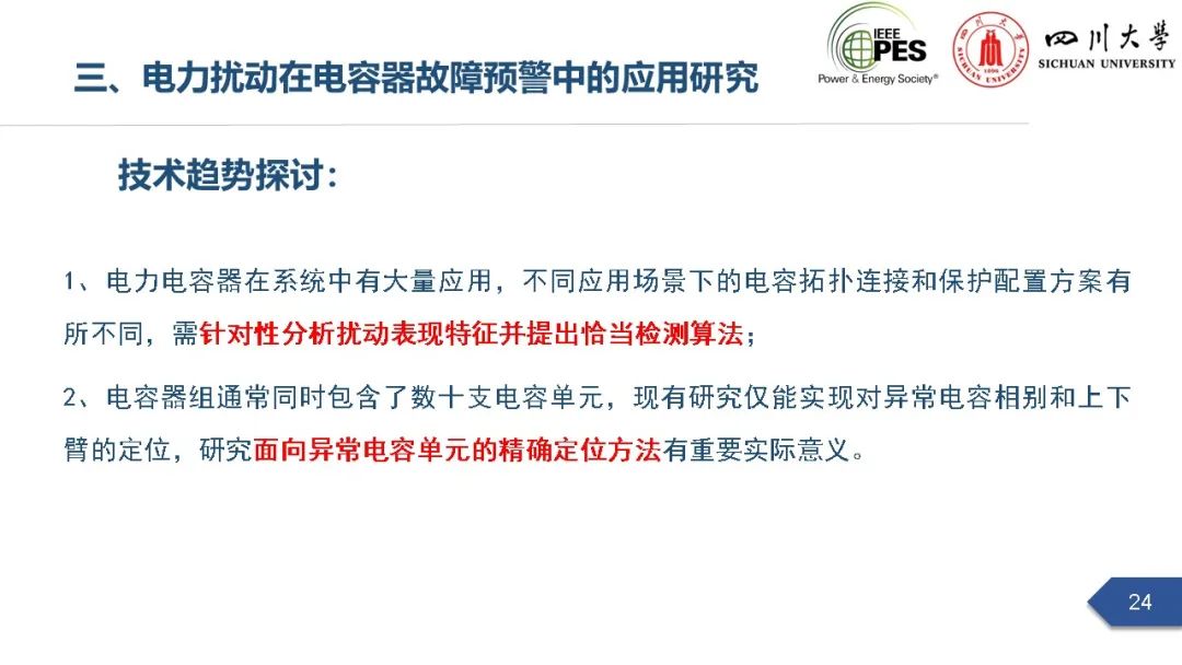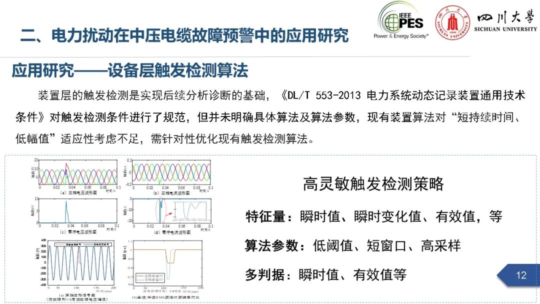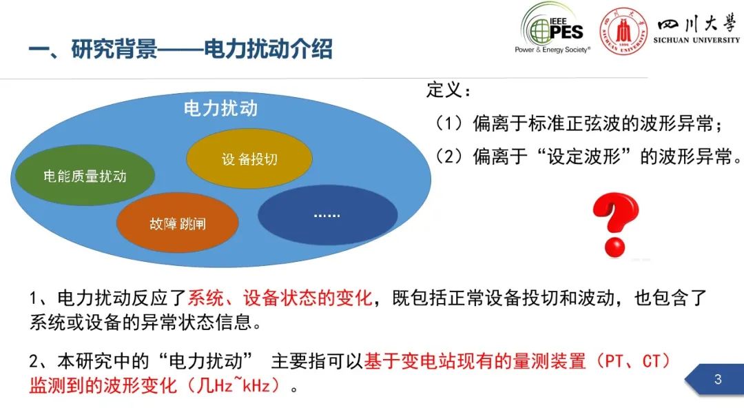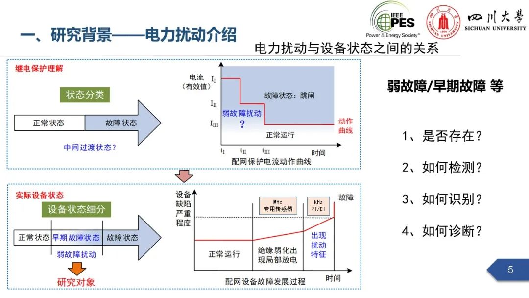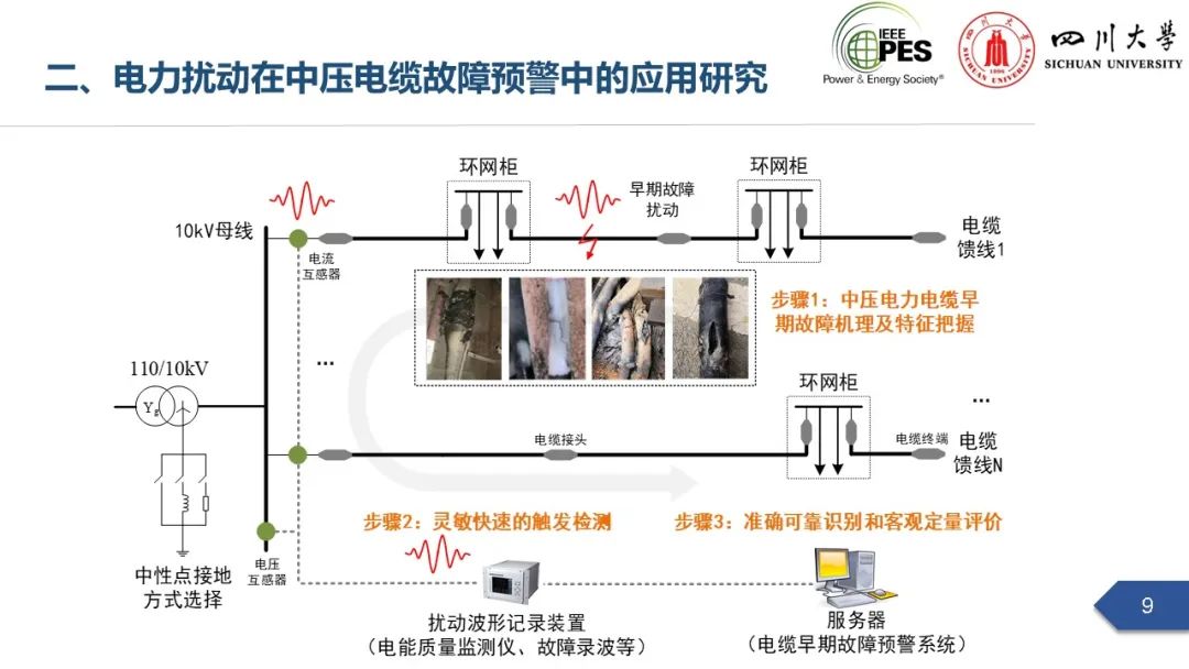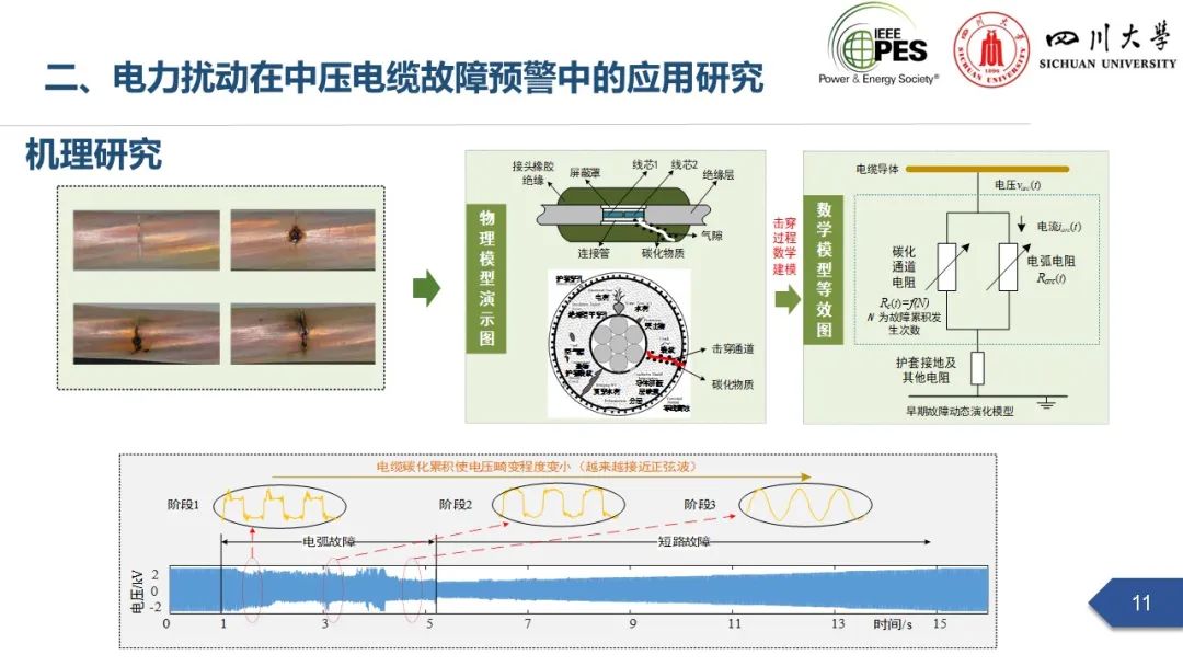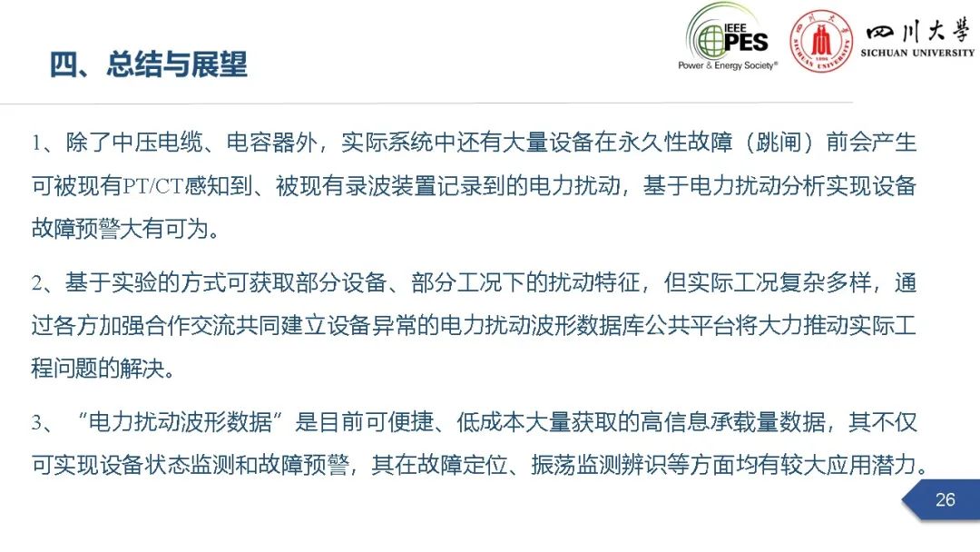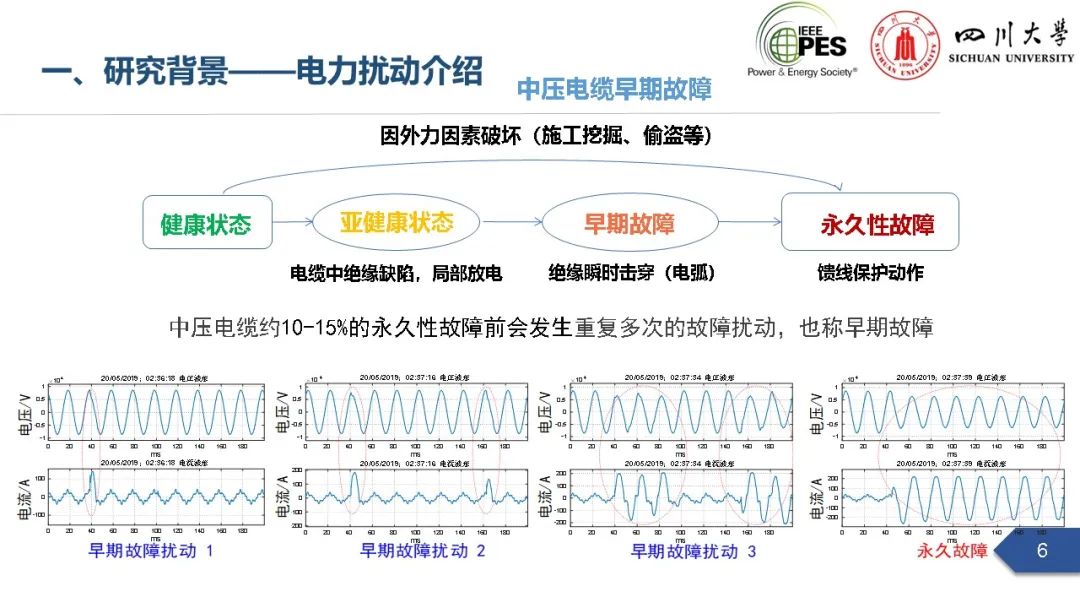 副研究员张文海作了题为“电力扰动分析在设备故障预警中的应用初探”的主旨报告,指出利用站端电压/电流互感器直接测量获取的电力扰动波形数据可以有效地感知设备和系统状态,并在此基础上针对中压电缆和电力电容器两类设备在永久性故障前期可能出现的扰动进行了探索性研究,提出了基于电力扰动监测的中压电缆和电力电容器故障预警方案。经本人授权,与大家分享报告PPT。