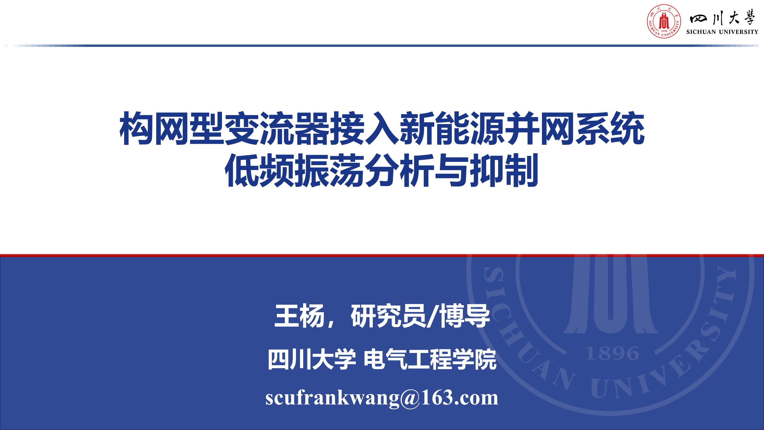 王杨研究员作了题为“构网型变流器接入新能源并网系统低频振荡分析与抑制”的报告。报告内容经本人授权,与大家分享。