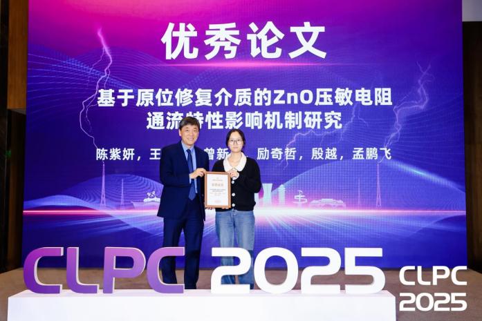 硕士研究生陈紫妍以“基于原位修复介质的ZnO压敏电阻通流特性影响机制研究”为主题进行汇报,研究利用基于Voronoi网络的压敏电阻多物理场耦合特性精细化数值计算模拟,在ZnO压敏电阻边缘区域涂覆原位修复介质并进行二次烧结有效填充侧面开放气孔缺陷,提升压敏电阻内部结构均匀性,改善电阻片内部的温度及热应力分布,提升电阻片的能量吸收能力。该研究荣获会议优秀论文奖。