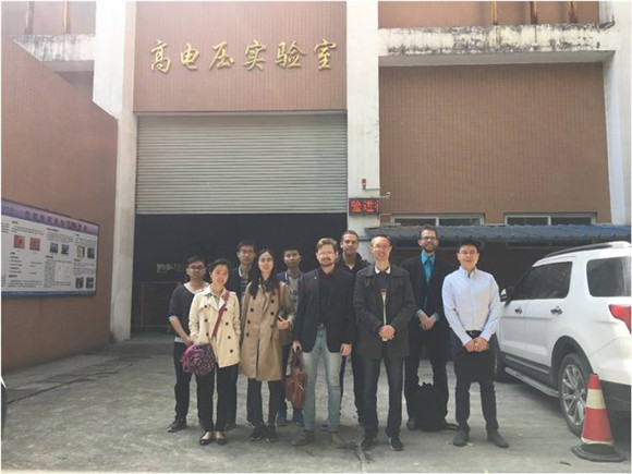 讲座交流结束后,查尔姆斯理工大学学者一行参观了高电压实验室试验大厅,高电压实验室的同学们就实验室内搭建的各项试验平台进行介绍。最后,高电压实验室师生与查尔姆斯理工大学学者们合影留念。