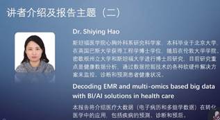 讲座邀请来自清华大学的助理教授眭亚楠博士和斯坦福医007足球 的Shiying Hao博士作为分享嘉宾。眭亚楠博士本科毕业于清华大学,博士毕业于加州理工007足球 ,曾在加州理工007足球 Joel Burdick/Yisong Yue教授课题组和斯坦福大学Fei-Fei Li教授课题组从事博士后研究,研究领域主要为医学人工智能、机器学习、神经工程和机器人技术。眭博士在讲座中介绍了医疗智能化研究的所需技术和最新应用,包括有安全保证和高效利用多种反馈的强化学习理论与算法,及其在机器人学(火星探测器控制)和临床医学(神经调控疗法)等领域的应用。Shiying Hao博士本科毕业于北京大学,博士毕业于英国巴斯大学,曾在伦敦大学007足球 (UCL)、密歇根州立大学和斯坦福大学从事了五年的博士后研究,研究领域主要为健康数据分析。Shiying Hao博士在讲座中介绍了国际上流行的医疗健康的智能技术发展和应用前景,包括医疗大数据(电子病历和多组学数据)在转化医学中的应用,以及疾病的预测、诊断和预后。两位嘉宾的精彩分享引起了听众的广泛兴趣,受到一致好评。