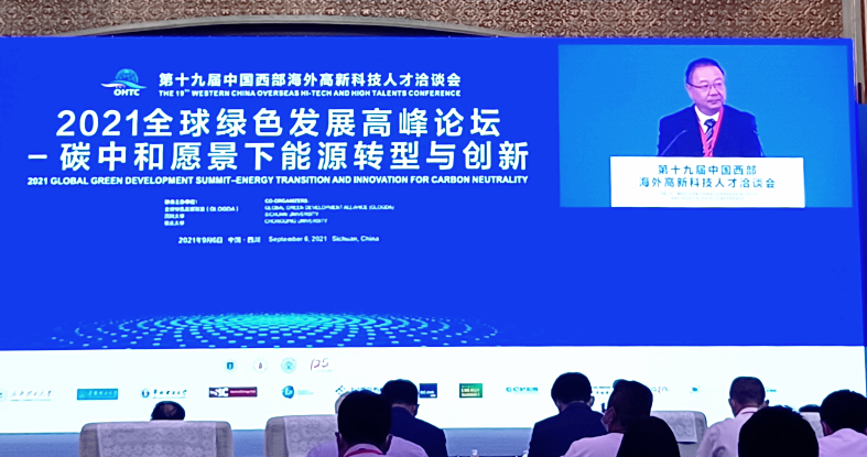 2021年9月6日至9月8日,作为第十九届中国西部海外高新科技人才洽谈会的系列活动之一,由全球绿色发展联盟、四川省侨办、四川大学、重庆大学联合主办的2021全球绿色发展高峰论坛在成都顺利召开。会议聚焦碳中和愿景下能源转型与创新, 设置了主论坛和十个专题论坛,邀请诺贝尔奖获得者、海内外院士、各国能源行业专家学者及著名高校、相关专业人士通过线上和现场结合的方式参加本次论坛。四川大学梁斌副校长出席开幕式并致辞。