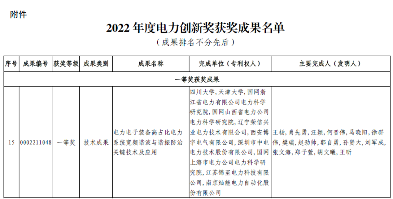 喜报|四川大学电能质量与优质供电研究团队荣获2022年度电力科技创新奖技术成果一等奖
