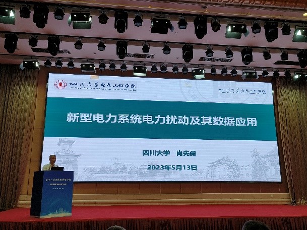 院长肖先勇教授携汪颖教授、王杨研究员、孟鑫副研究员、胡文曦老师和陈韵竹老师参加了此次研讨会,并作大会报告,就新型电力系统电力扰动及其数据应用分享了前沿观点。