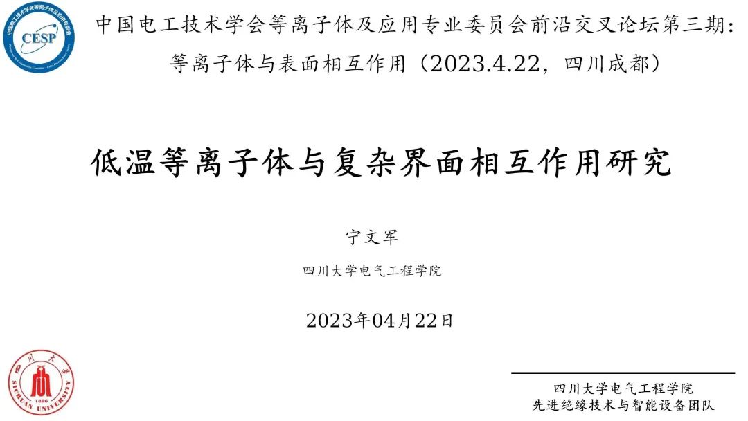 在2023年中国电工技术学会等离子体及应用专业委员会前沿交叉论坛第三期:等离子体与表面相互作用论坛上,007足球
