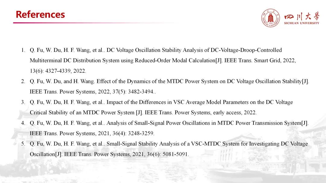 电能质量与优质供电团队副研究员,四川省青年创新团队、四川大学新能源电力系统工科特色团队成员,博士毕业于华北电力大学,研究方向为新能源、储能与柔性直流输电系统的稳定性分析与控制。累计发表论文40篇,其中IEEE PES Trans论文18篇;担任IEEE Trans期刊、《电力系统自动化》审稿人。近期研究重点是多端柔性直流输电系统的宽频振荡及抑制,并已依托国内实际工程完成复现,期待与各位专家学者一起交流合作。