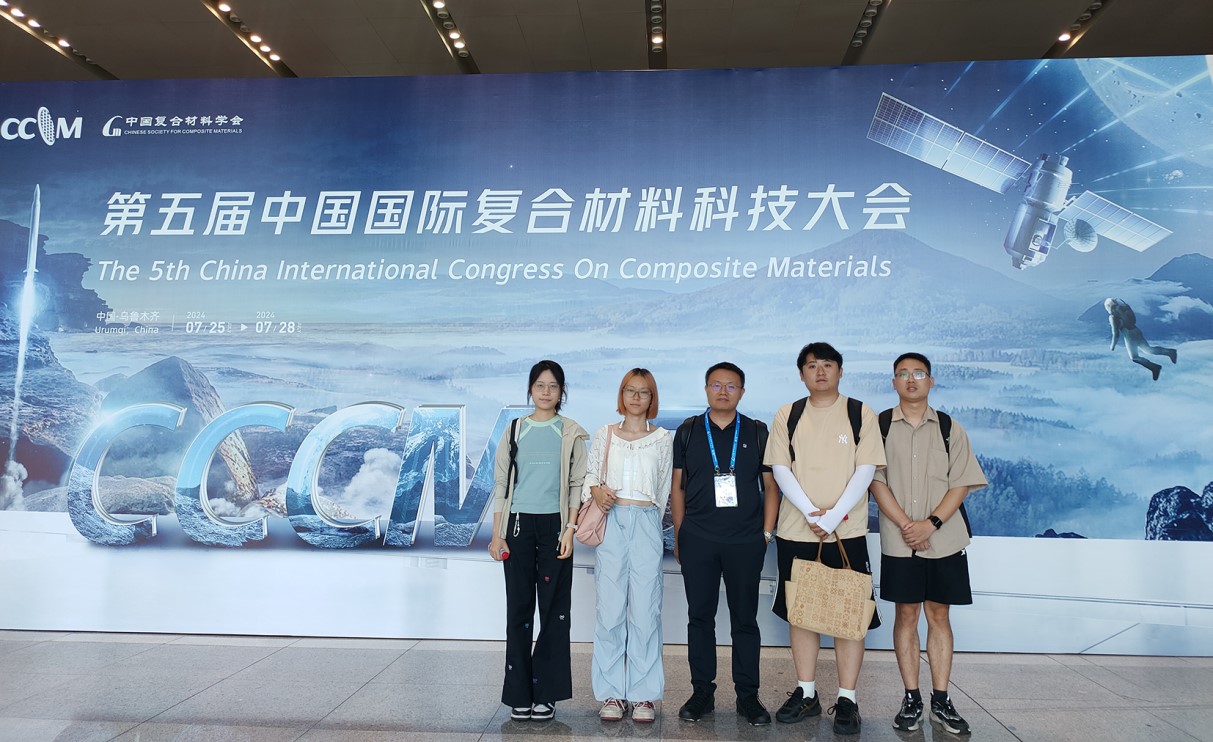 3. 2024年7月26日至28日,第五届中国国际复合材料科技大会在新疆乌鲁木齐市举办。大会汇聚两院院士、行业专家学者、知名企业代表和技术领军者,集中展现复合材料领域最新及最高水平研究成果,全方位展示复合材料科学的基础科研与前沿技术,推动复合材料成果的转化和共享。先进电工材料与新型电气设备研究团队任俊文老师带队,研究生夏紫璇、童盈盈、袁浩文、陈钰受邀参会。