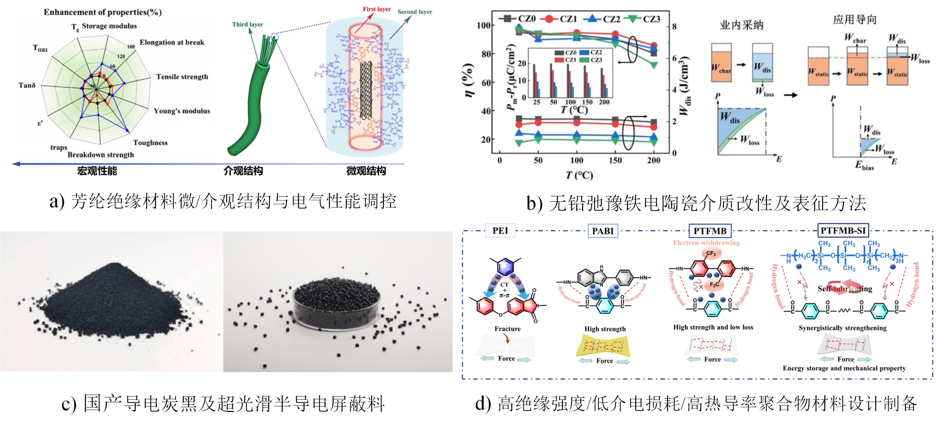开展高绝缘强度/低介电损耗/高热导率聚合物材料本征多层次结构设计与制备,建立高温强电场下载流子传输行为与聚合物绝缘及储能性能相关联理论;研究极端条件/复杂电场环境能源电气材料-器件-设备长期服役稳定性。
