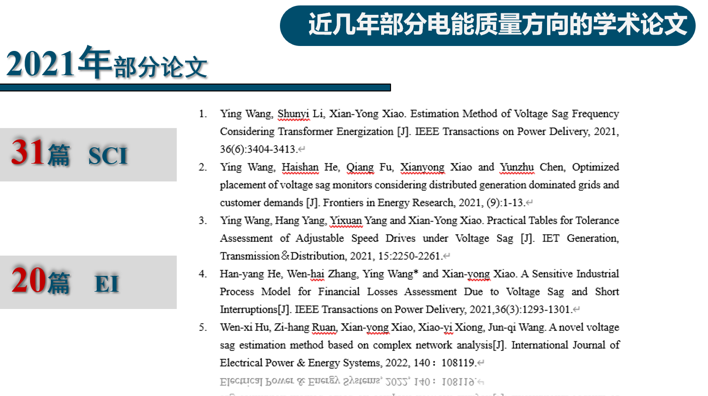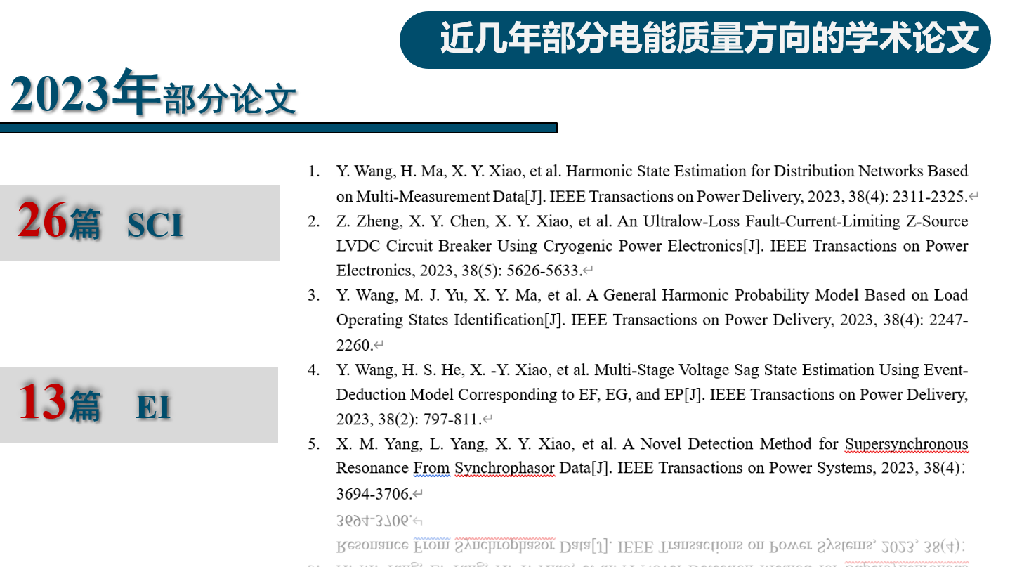 2019-2023年团队在电能质量领域发表的部分高水平学术论文: