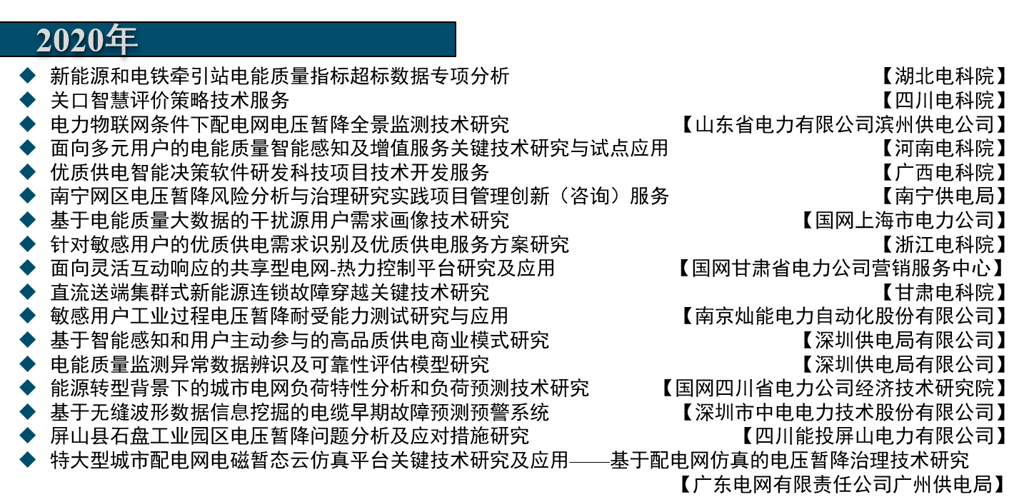 • 电网公司:国网总调、四川省调、山西省调、云南省调、成都电力局、重庆电力局、南京电力局、杭州电力局、济南电力局、四川省检修公司、北京市供电公司、上海市电力公司、天府新区供电公司、佛山电力局、南网电科院、昆明供电局、广西电科院等。