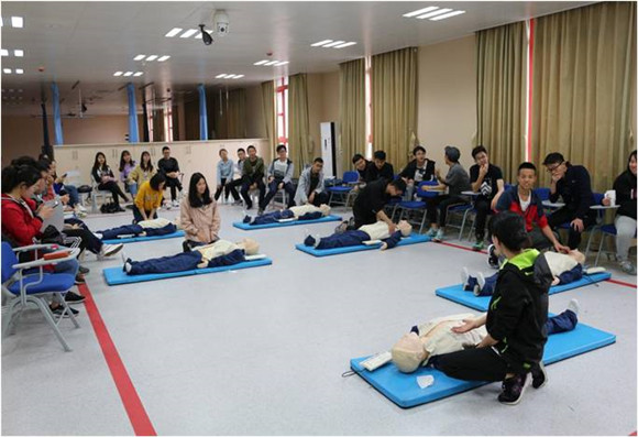 张老师反复强调心肺复苏的要领、外伤止血包扎的各项技巧,运用自己丰富的实践经验为同学们提供案例,帮助大家更好的理解这些急救方法的原理。