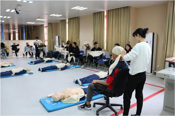 短暂的午休过后,下午的培训内容是医学急救技能,张建娜老师利用课件、视频及亲自示范等方式向学员们讲解了止血包扎法、海姆立克急救法及CPR急救法。面对医学知识储备几乎为零的学员们。