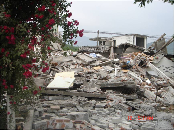 三层的楼房倒塌只剩下废墟(图片由李成鑫老师提供)