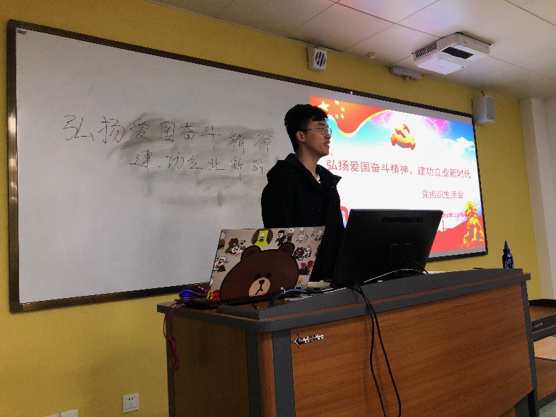 2018级硕士第二支部委员会于研究生院3区304召开“弘扬爱国奋斗精神,建功立业新时代”主题党组织生活会。会议由支部书记罗兰同志主持。
