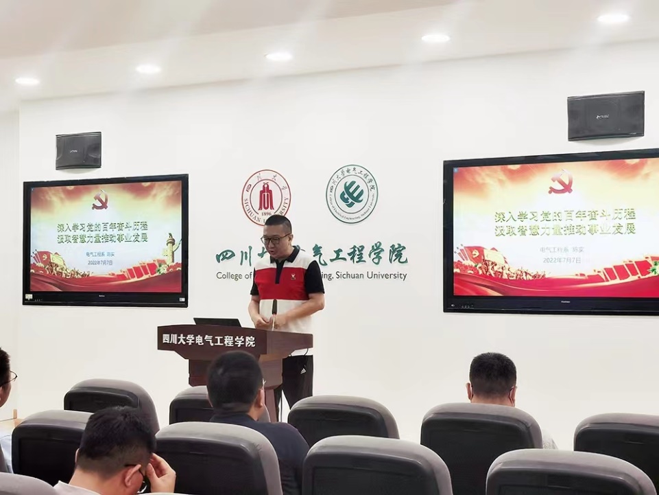 随后,陈实书记结合我系的现状,分享了电气工程系党支部今后的发展思路。他说到,第一,师生要坚定理想信念,坚持为党育人。通过开展“小饭桌、大世界”师生交流会,引导学生树立远大理想,学成报国。第二,聚焦人才培养,推导内涵式发展。加强一流课程建设,完善实验实践平台建设。第三,通过助力科研发展,提升学科水平。以做有组织科研为理念,做好学科发展,充分发挥支部的动员组织作用。以国家重大科研项目为切入点,组织科研团队加强国家级项目和大型横向项目的申报、技术路线论证和团队间协作。第四,发挥专业优势,服务社会发展。发挥党员先锋模范力量,向支部外辐射党建影响和作用,回馈社会。探索建设完善“服务政府、服务企业、服务学校”三级服务体系,践行奉献担当精神。