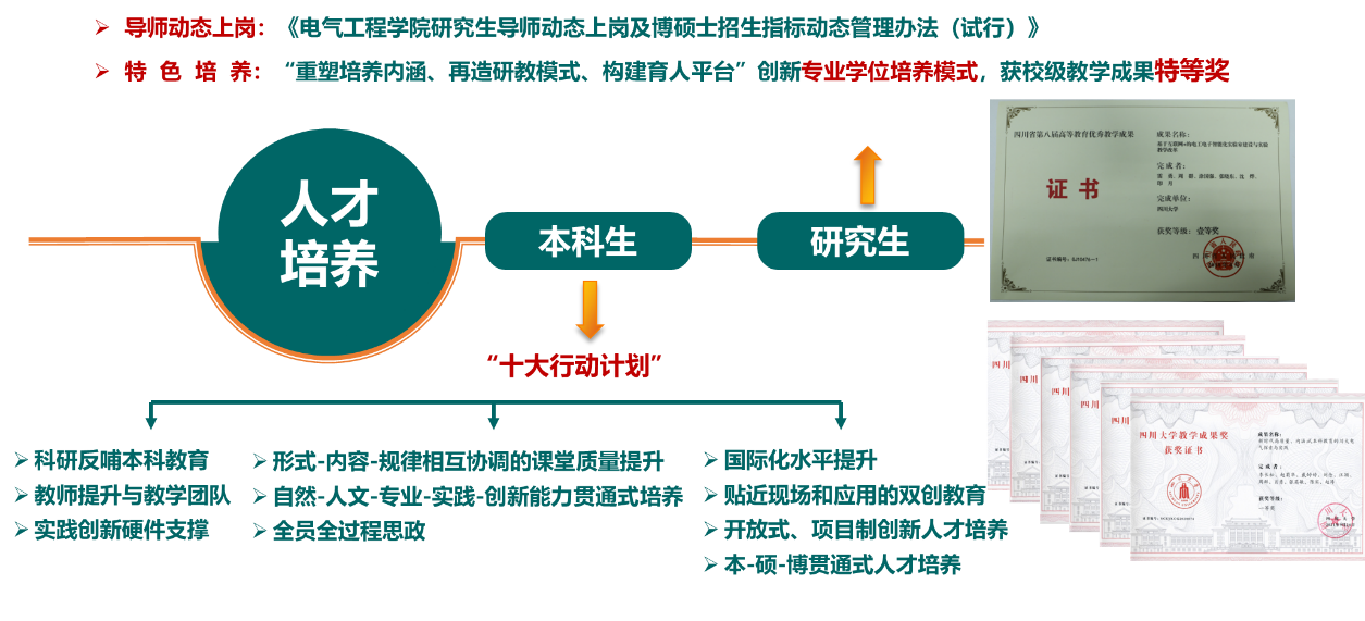 新增电气工程一级学科博士点、能源动力专业学位博士点,参与建设人工智能交叉学科博士点和电子信息专业学位博士点;现有电气工程及其自动化、自动化两个专业全部入选国家级一流本科专业建设点,电气工程及其自动化专业通过中国工程教育专业认证;建成国家级双创示范基地超导与新能源中心,全国专业学位研究生联合培养示范基地,省级重点实验室3个,工业互联网(能源互联网)中心1个,学科实力显著增强。