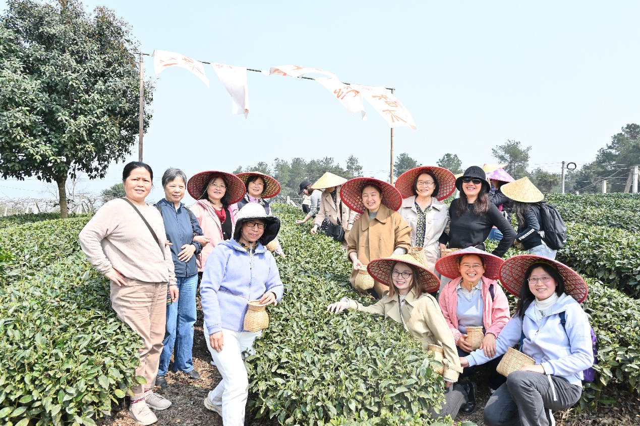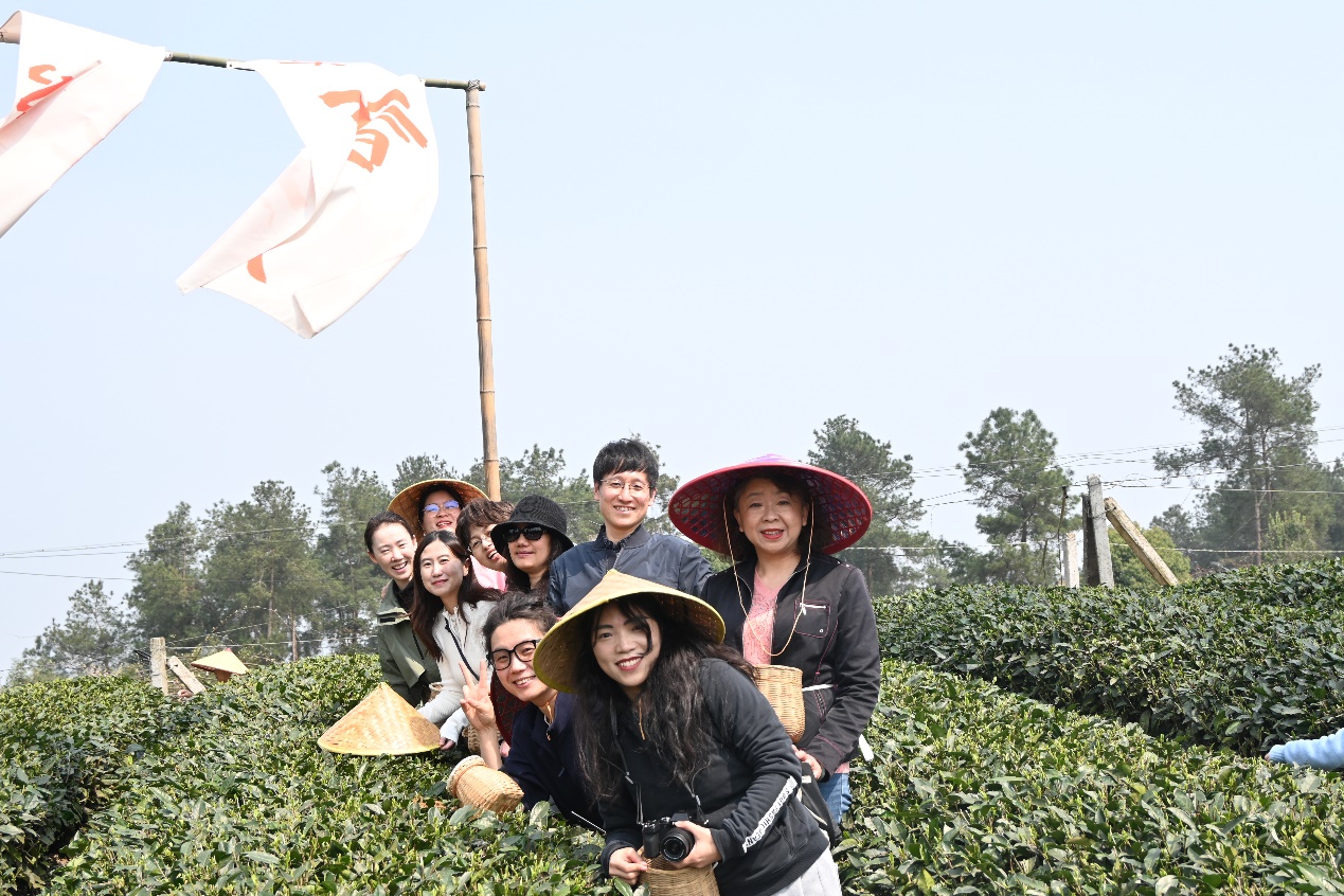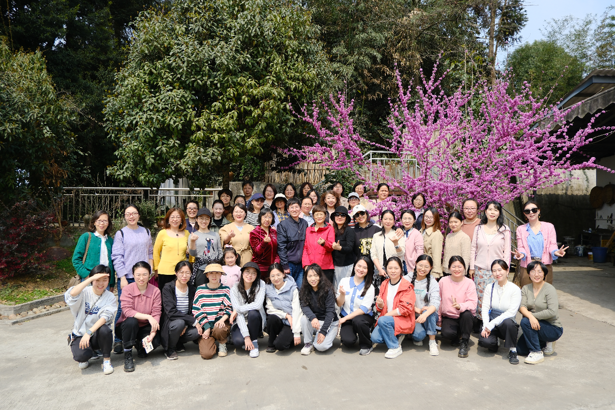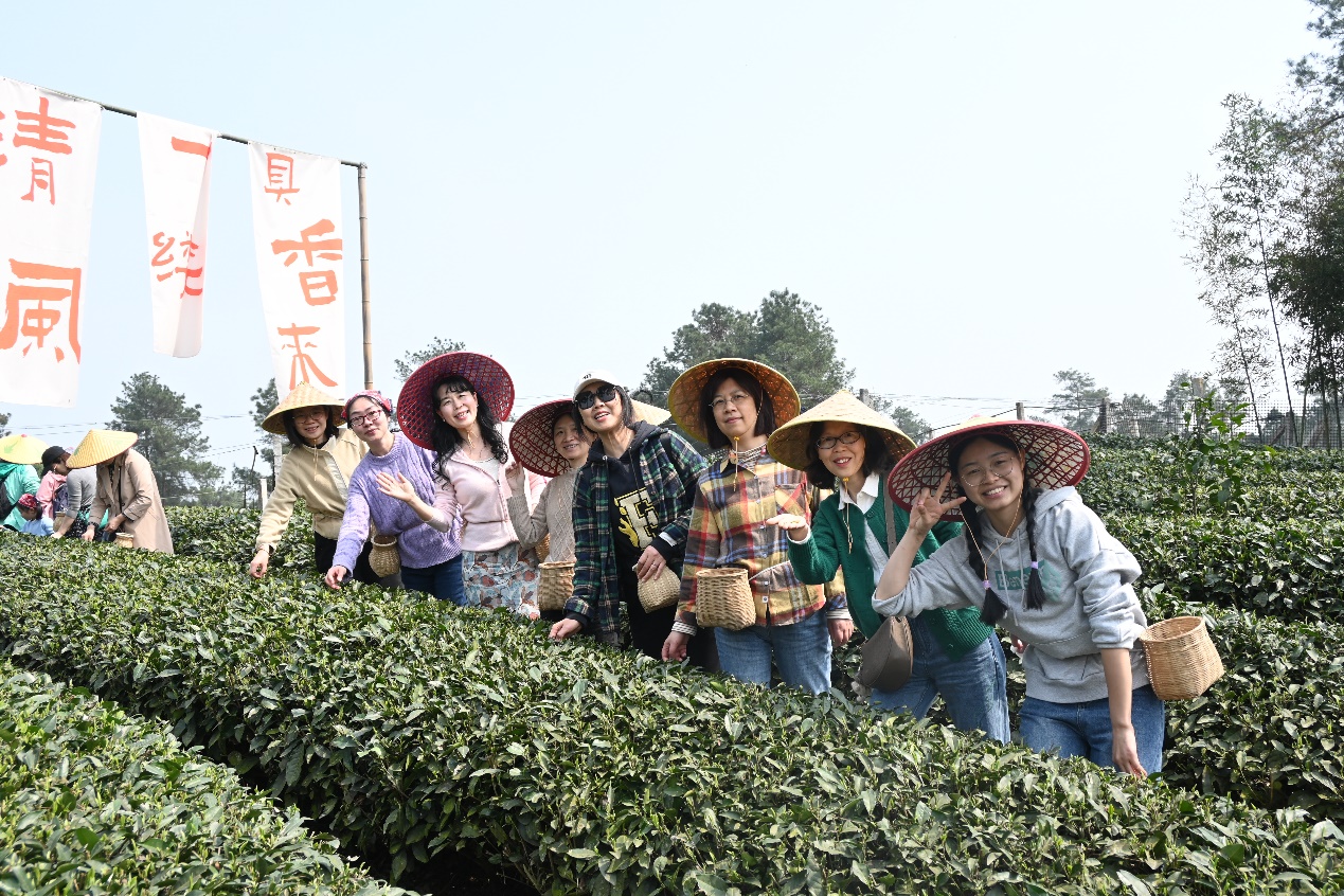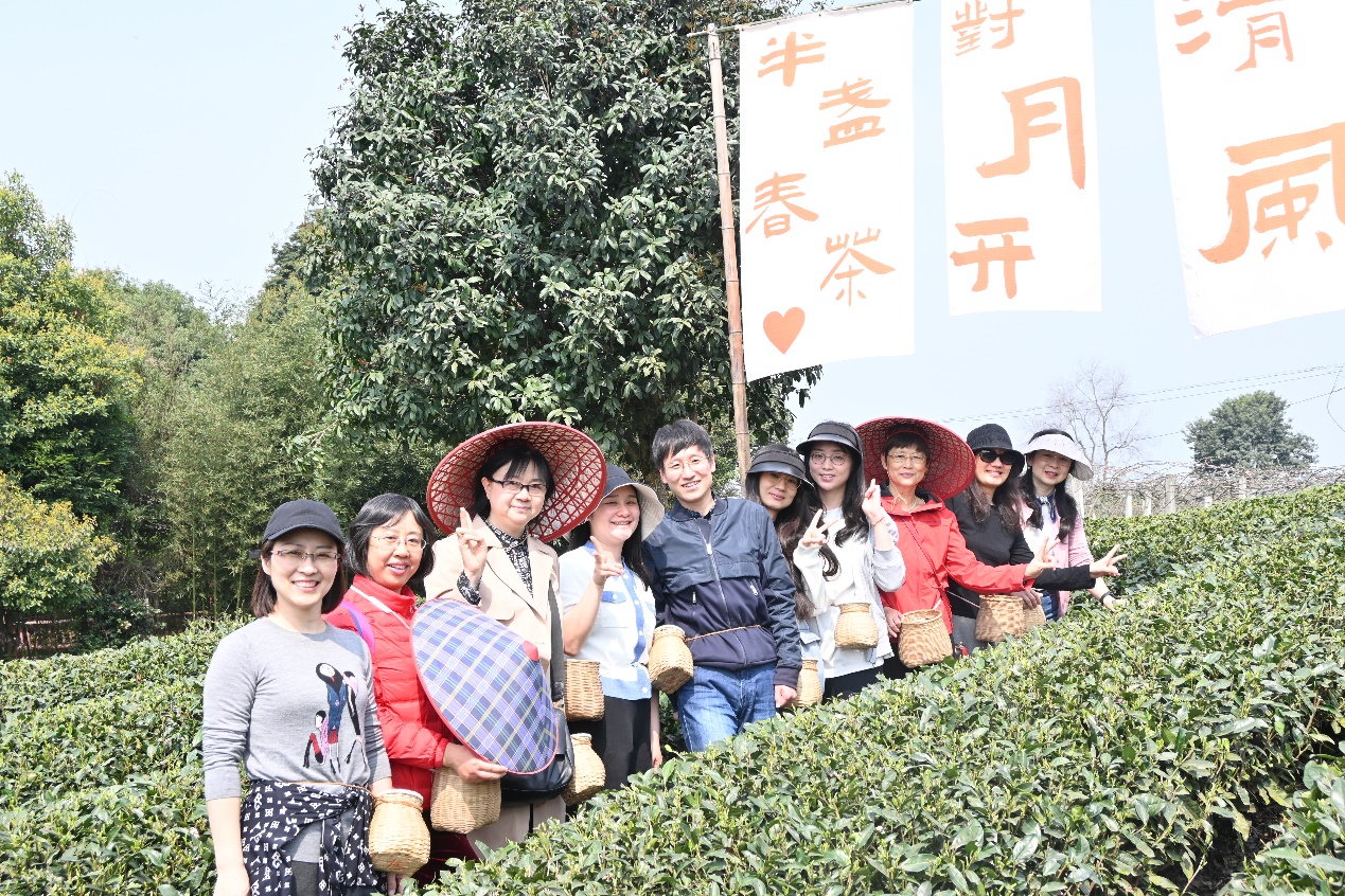 50余名女教师代表卸下繁重的工作,走进四川省首批省级乡村文化振兴样板村——蒲江明月村。在当地工作人员的指导下,大家纷纷背上茶篓,穿梭于茶园中,开始采茶之旅。