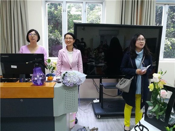 在花艺沙龙中,屈老师首先为大家介绍了此次插花中采用的花品,同时给大家介绍了这些花品各自的特点、养护要求及在插花中的特色和主要用途,然后向大家介绍了花艺搭配的原则。老师们在屈老师的指导下,饶有兴趣地完成了自己美美的花艺作品。整个会场洋溢着春天的气息。