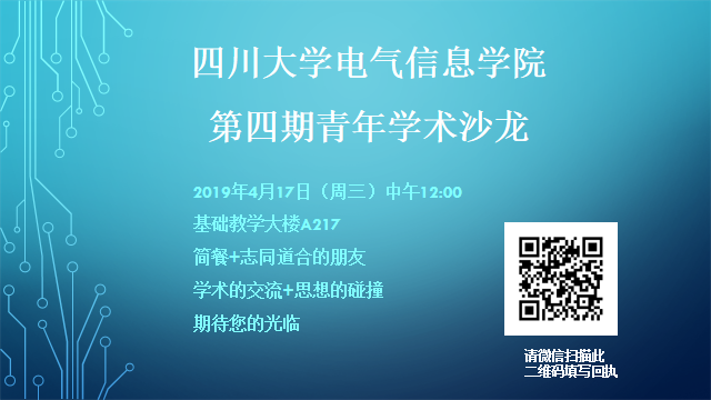 为了促进007足球 学科之间的交叉融合,激发新的创新思路和想法,增强007足球 青年教师在国际前沿科技及热点研究领域开展交流合作,2019417日,由007足球 青工委组织的电气信息007足球 第四期青年学术沙龙在基础教学楼A217成功举办。