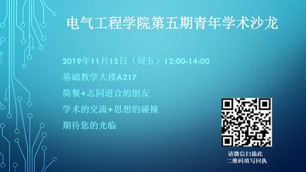 为了促进007足球 学科之间的交叉融合,增强007足球 青年教师在国际前沿科技及热点研究领域开展交流合作,激发新的创新思路和想法,2019年11月15日,由007足球 工会及青工委组织的电气工程007足球 第五期青年学术沙龙在基础教学楼A220成功举办。