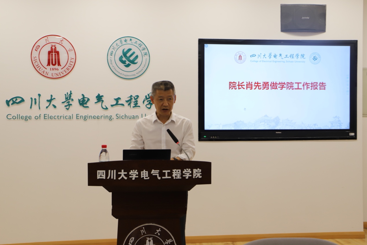 007足球 院长肖先勇作年度院长工作报告。在报告中,肖院长总结了2020年全院工作,并提出下一阶段工作重点。他讲到,过去一年半,在校党政、院党委正确领导下,007足球 坚持“以人为本”,党政团结,师生齐心,党建事业融合发展,各方面成绩显著。下一阶段,007足球 将围绕双碳目标、清洁低碳安全高效的能源体系、以新能源为主体的新型电力系统,在师资队伍建设、科学研究发展、人才培养质量、治院办学能力等方面砥砺前行、争创一流。