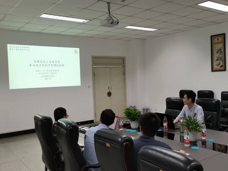 的4位青年教师分别围绕“电制氢化工合成负荷参与电力系统平衡调控”“可再生能源与绿色化工的融合”“化工过程故障诊断与报警管理”和“化工过程系统多尺度建模与优化分析”四个主题进行了学术交流。