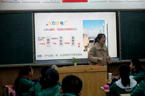 王静雯用有趣生动的语言,以“身边的电力应用”为切入点,采用PPT讲解与小视频播放相结合的方式,图文并茂地向同学们讲授了电力的来源、电能的产生和国家电力系统的构成等知识。火力发电厂、水力发电厂、风力发电厂、光伏发电厂、核电厂、生物质发电等发电厂类型多种多样;输电网、配电网等电力系统结构复杂先进;电力与环境的关系不得不让人们思考能源替代问题……许多同学们从未接触过的电力新知识,点燃了同学们智慧的火花,激发了同学们对电力科学知识的渴望,也引起了同学们对电力科学的浓厚兴趣。