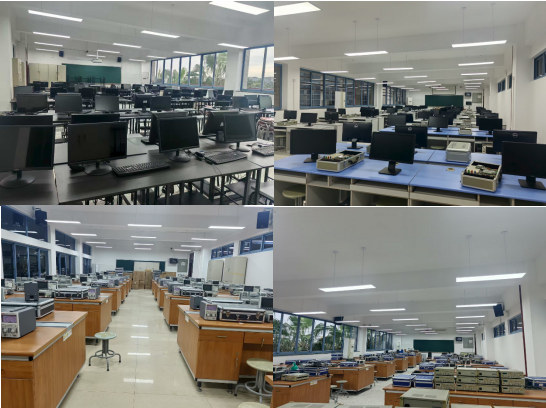 电工电子基础实验教学中心利用暑假完成包括学生创新实验室等在内的所有实验室电路改造、室内装饰等装修,对线路扩容,增加插座到桌,照明灯重新布线更换为LED灯;对所有实验室线路统一布线,按教学要求增设380V的实验线路;实验室墙面重新粉刷乳胶漆,地面打磨清洗,使实验室更加干净、整洁、明亮。电子实习实验室增设安装通风管道,极大改善实验环境。