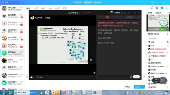 开学第一天,各课程按课表安排稳步上线。由于前期准备充分,各课程均考虑了多种在线授课方式,所以虽然有的课程遭遇网络拥堵,但依然通过后备方案顺利完成授课。学生学习气氛活跃,提问交流积极,认真完成习题和作业,课堂运转正常。