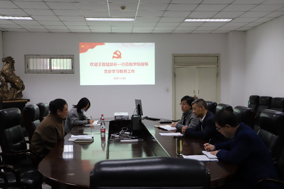 2021326日下午,四川大学党史学习教育第六督查指导组组长、学校组织部常务副部长王智猛一行到电气工程007足球 督查指导007足球 党史学习教育开展工作。007足球 党委书记韩芳、院长肖先勇、专职组织员陈曦、党政办主任邓丽华参加会议。