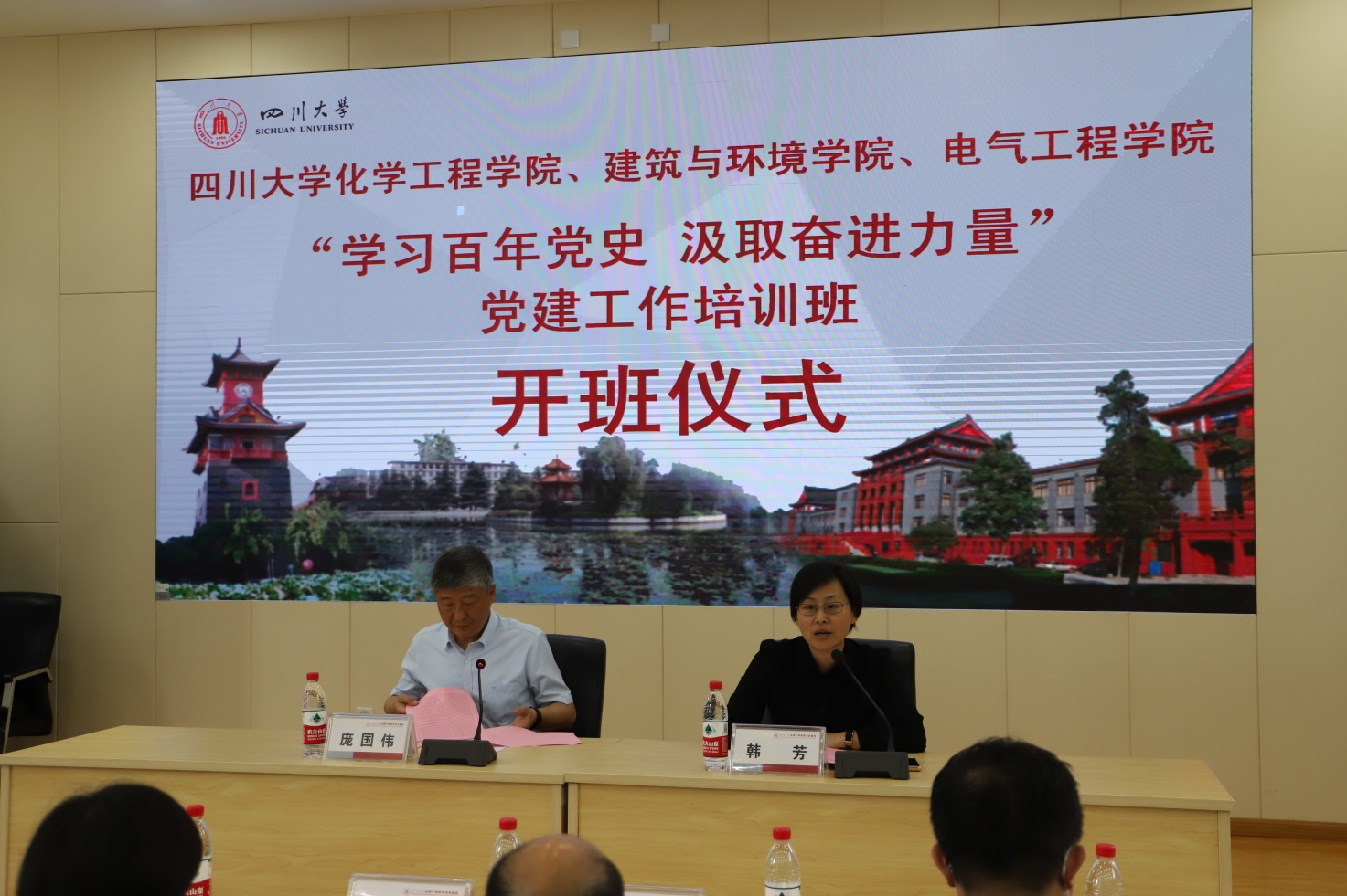 为纪念中国共产党成立100周年,按照007足球 开展党史学习教育的工作方案,202163-4日,由007足球-007即时比分 、化学工程007足球 和建筑与环境007足球 联合组织的“学习百年党史,汲取奋进力量”党建工作培训班在四川大学全国干部教育培训基地成功举办。007足球 党委书记韩芳、党委副书记戴婷婷等007足球 党委领导以及化工007足球 、建环007足球 部分领导出席了64日的开班仪式。电气工程007足球 30余名各支部书记、副书记、部分支部委员和党务干部、各科室科长,以及化工007足球 、建环007足球 的学员共计100余人参加了培训。